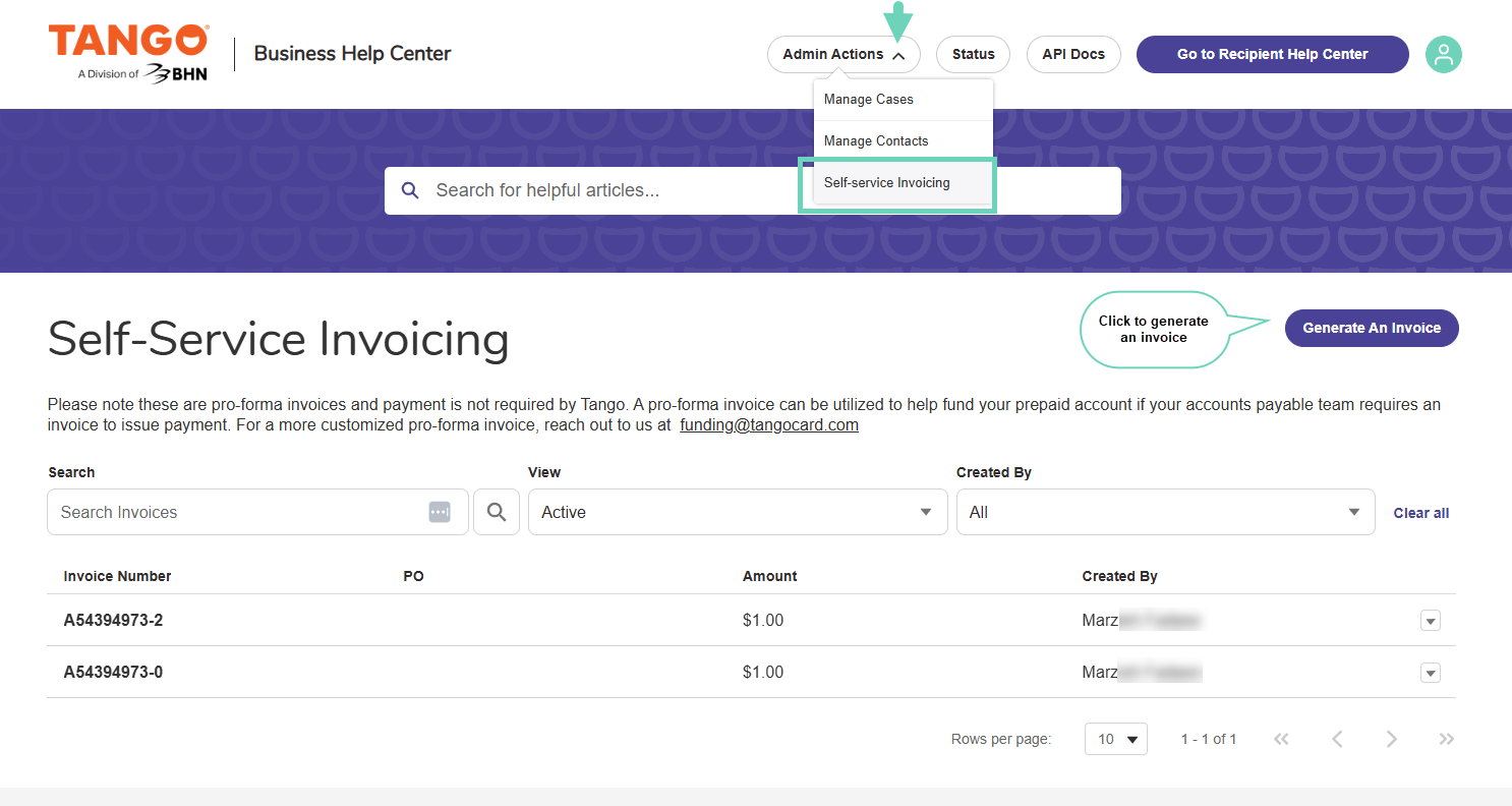Using the Tango portal, you can effortlessly generate self-service invoices. A self-service or pro-forma invoice serves as a preliminary or estimated bill of sale which is provided prior to finalizing your order. It can be used to help fund your prepaid account if your accounts payable team requires an invoice to issue the payment.