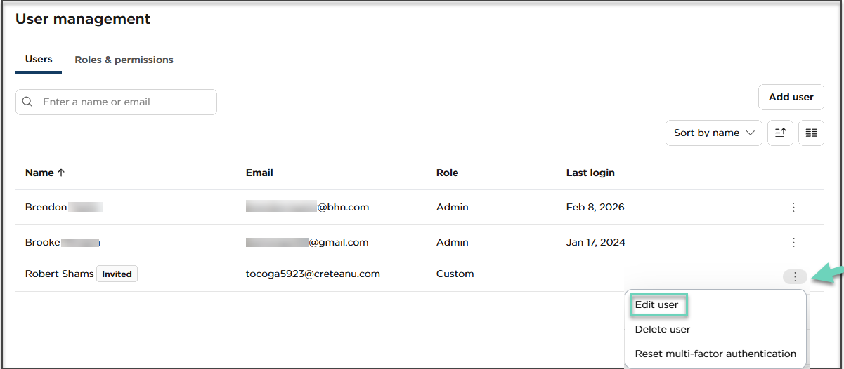 Click the three-dot menu on the user row you want to edit, or click the row itself.