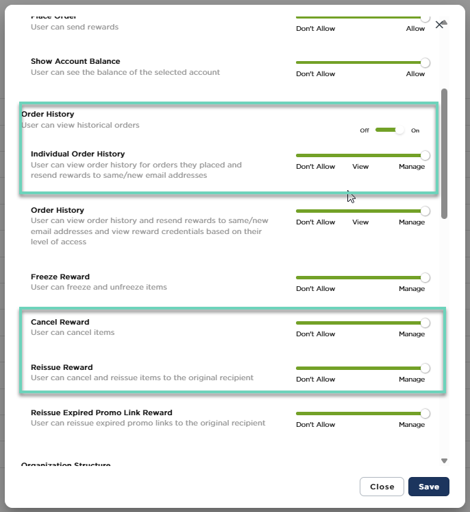 You must have the correct permissions in the Tango portal to self-cancel or cancel and reissue rewards. See the Required permissions below.