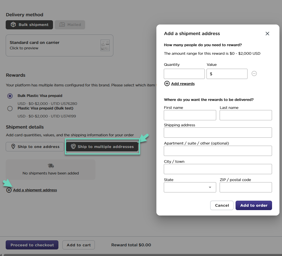 With the Tango portal, you can easily send physical rewards through bulk shipment. Simply select your desired card value and quantity, provide the U.S. address(es) for delivery, and track your orders and shipments to final delivery.